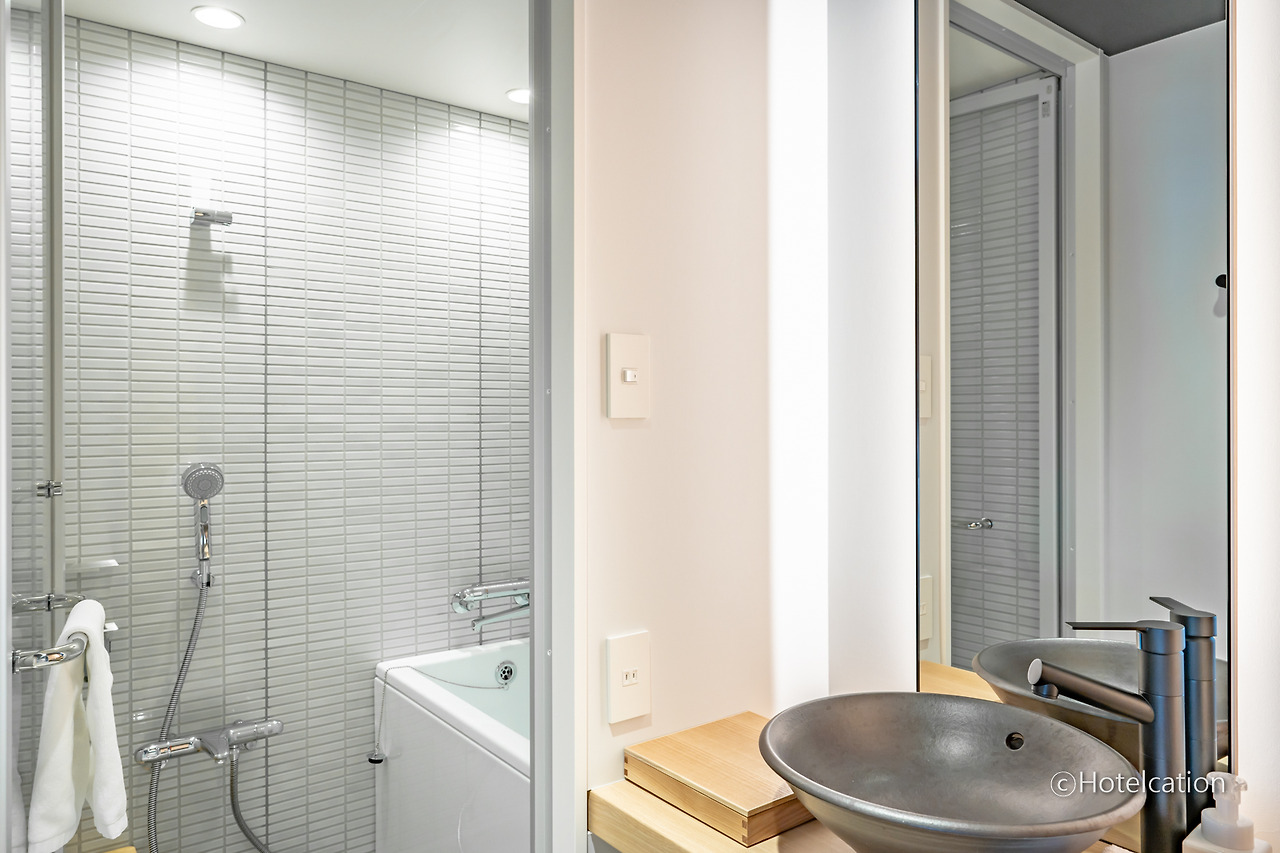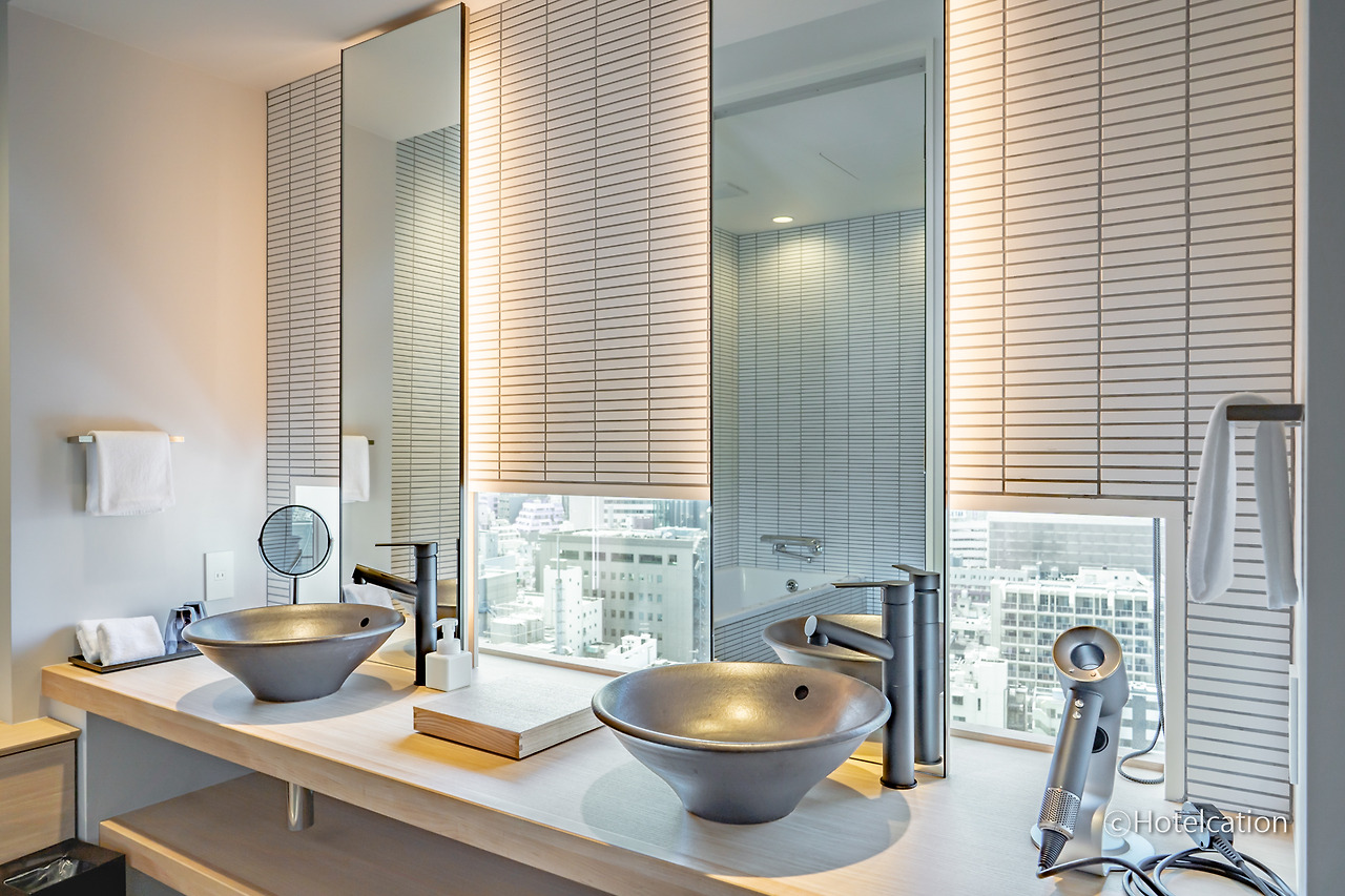 유엔 스위트 룸은 료칸 유엔 신주쿠에서 가장 큰 크기의 객실로 별도로 거실이 분리되어 있지 않지만 채광이 잘 들어오는 통유리로 도쿄 스카이라인을 감상할 수 있고 넓은 크기의 욕실을 제공합니다. 드라이기도 다이슨으로 제공하는 어메니티도 일부 차별화를 시도했네요. 가격대가 다소 높지만 도쿄의 높은 호텔 가격을 감안하면 또 합리적인 가격대 같기도 합니다.
