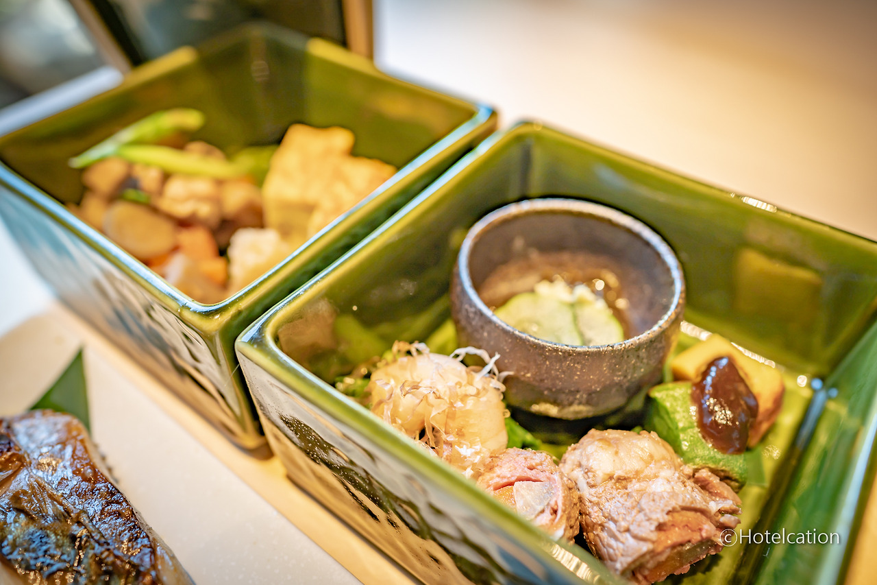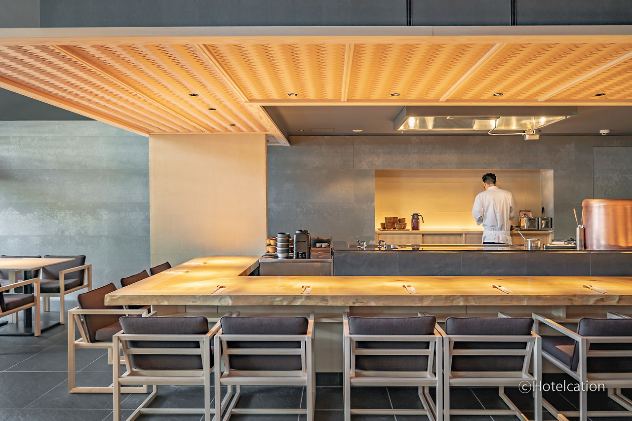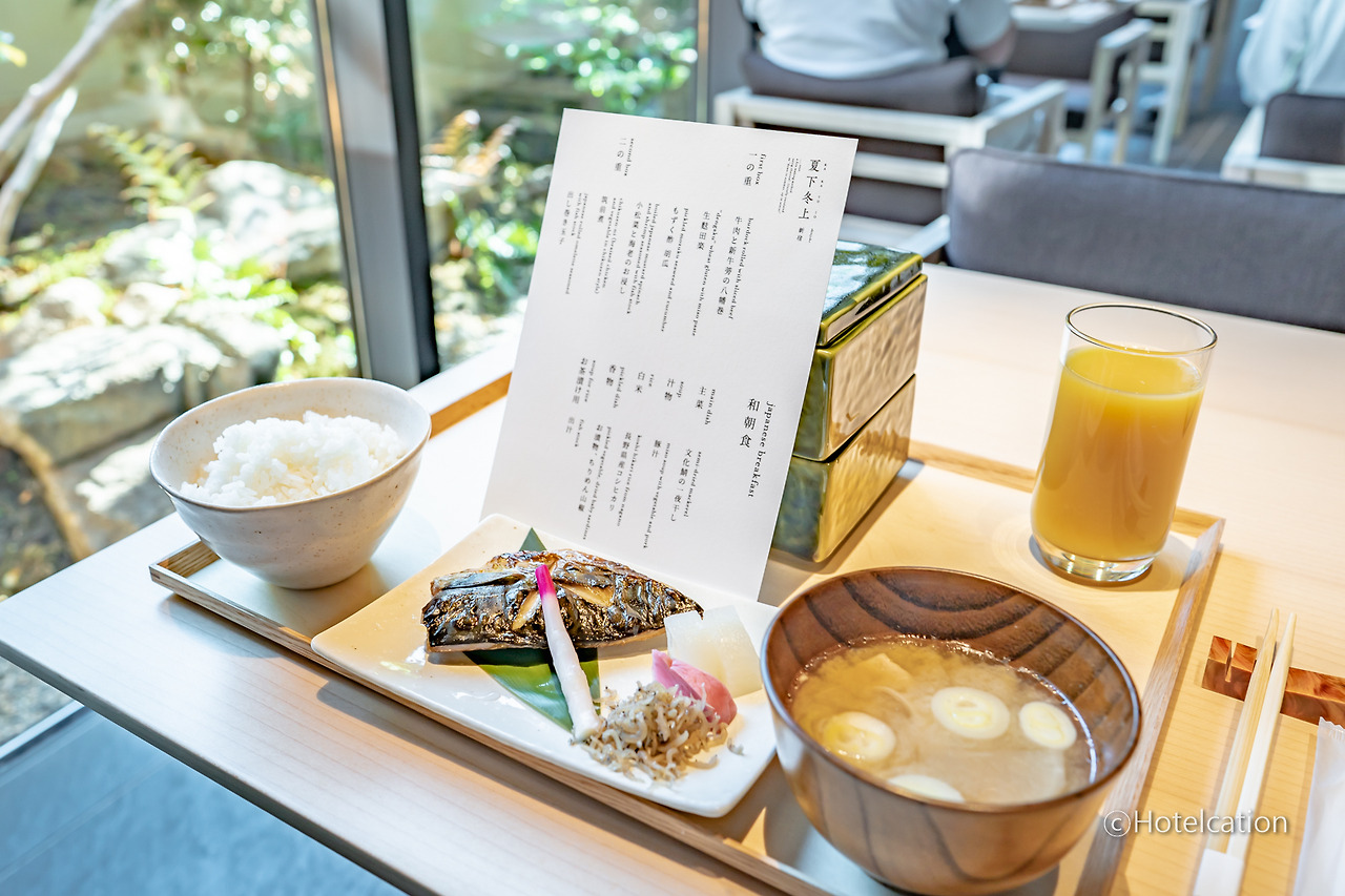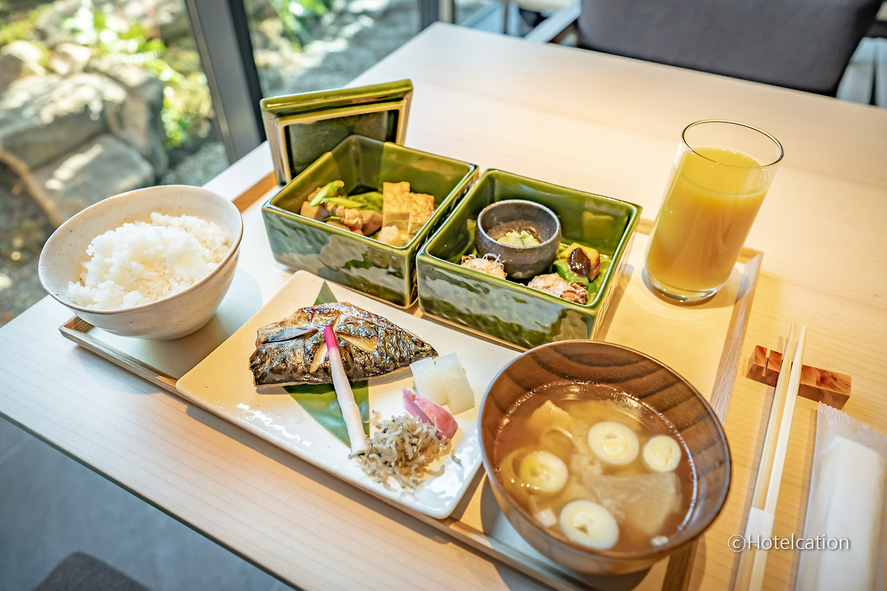 조식은 입구에 위치한 카카토죠(夏下冬上)에서 제공됩니다. 카카토죠는 여름에는 숯 밑에 불씨를, 겨울에는 숯 위에 불씨를 놓는 것이 좋다는 의미라고 하는데요. 뭔가 레스토랑 이름이 숯과 관련되어 있어 숯불을 이용하는 요리를 잘할 것 같았는데 정작 덴뿌라(튀김)이 가장 맛있다고 하네요. ^^;;