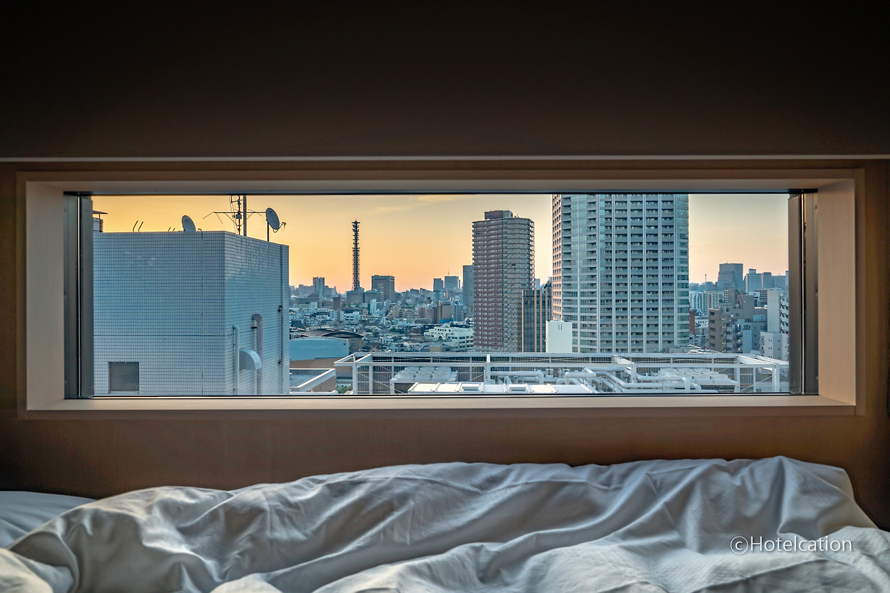 비교적 고층인 14층으로 배정받았는데도 작은 창문 덕분에 시원한 전망을 감상하기는 어려웠습니다. 다만 잠들 때 누워서 보는 도쿄 도심의 스카이라인은 참 매력적이었어요. 객실에 따라서는 도쿄타워가 어설프게 보이는 객실도 있습니다.