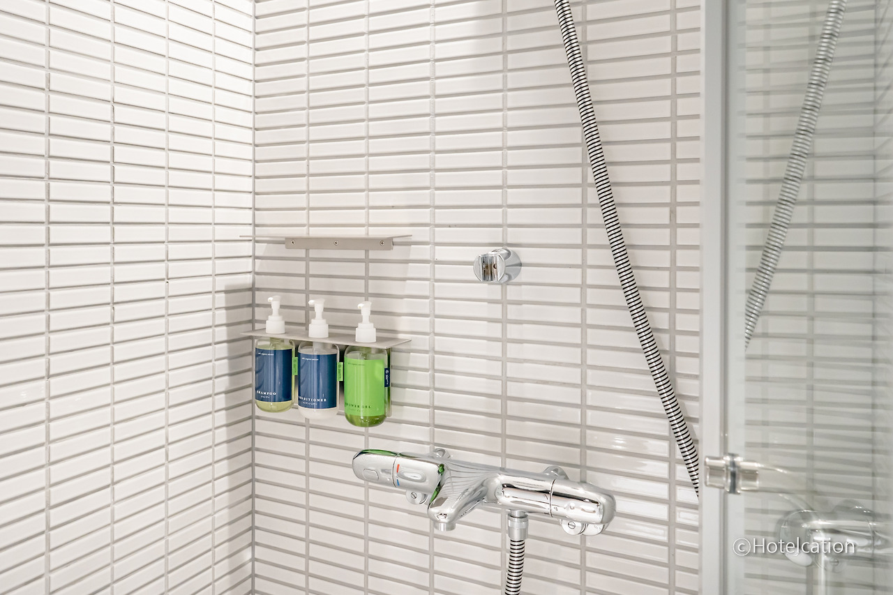 좌측에는 정말 비좁은 샤워실이 있습니다. 들어가면 나오기도 쉽지 않을 정도로 비좁습니다.