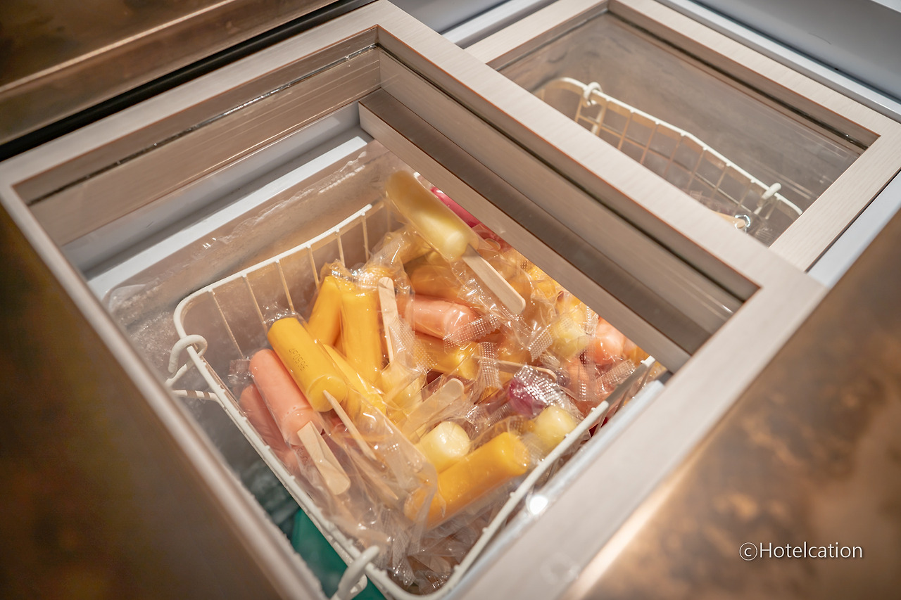 욕실에 들어가기 전에 조그마한 라운지가 꾸며져 있는데요. 목욕 후 또는 전에 무료로 아이스크림을 먹을 수 있습니다. 개수 제한 없습니다. 마음껏 드셔도 됩니다. 온천이 최상층에 위치해 있기 때문에 전망도 좋아서 앉아만 있어도 시간이 잘 가는 곳입니다.
