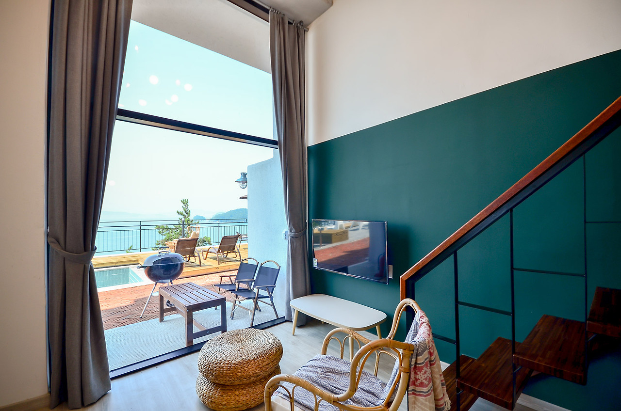 여수 다시, 봄펜션은 애견 동반 객실을 보유한 펜션이에요. 애견인들이 강아지와 함께 여행하고 싶은 마음을 배려한 곳이죠. 이곳은 특이하게도 모든 객실이 복층구조로 되어있어요. 그리고 바다 전망 뷰라서 다도해의 석양을 바라보며 힐링타임을 즐길 수 있는 곳입니다. 바다를 배경으로 바베큐 파티도 가능하니 낭만적인 여수 밤바다를 즐겨보세요.