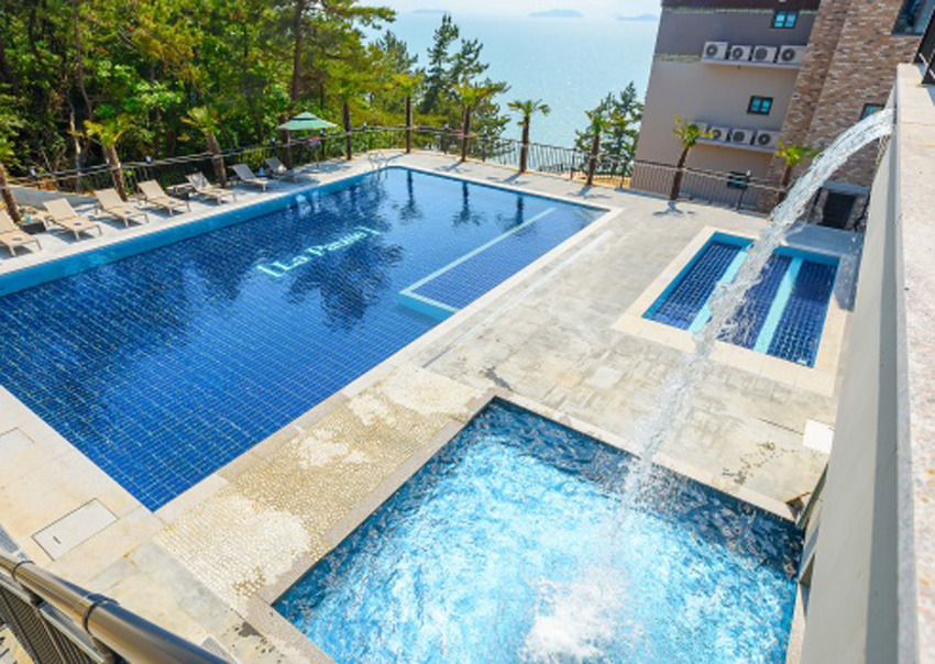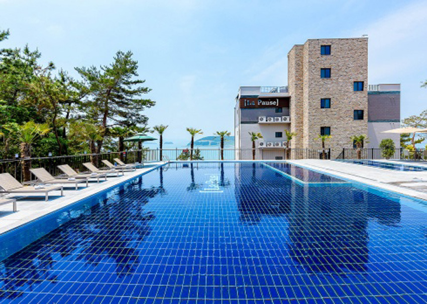 유아풀과 보조풀이 따로 나뉘어져 있어 어린 아이와 함께 놀기에도 좋은 라포즈 펜션입니다. 객실은 물론 수영장에서도 바다가 보이기 때문에 수영장에서 아름다운 노을을 감상하신 후에 밤수영을 하실 수도 있어요. 자동차로 12분 거리에는 해상케이블카가 위치해 있습니다.