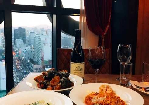 로맨틱 패키지를 구매하면 숙박과 함께 라운지에서 와인과 식사를 할 수 있답니다.