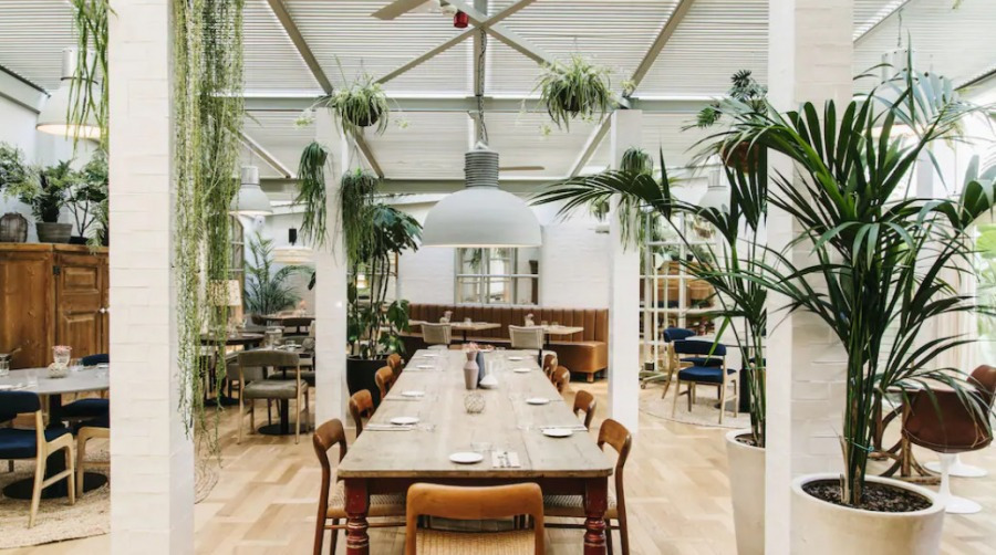 퓰리쳐 바르셀로나에서는 도심 속 힐링을 느낄 수 있어요. 루프탑 테라스와 레스토랑에는 식물을 배치하여 마치 온실 같은 느낌을 연출하거든요. 로비에도 초록색을 활용한 인테리어로 자연 친화적인 느낌을 주고 있어요.
