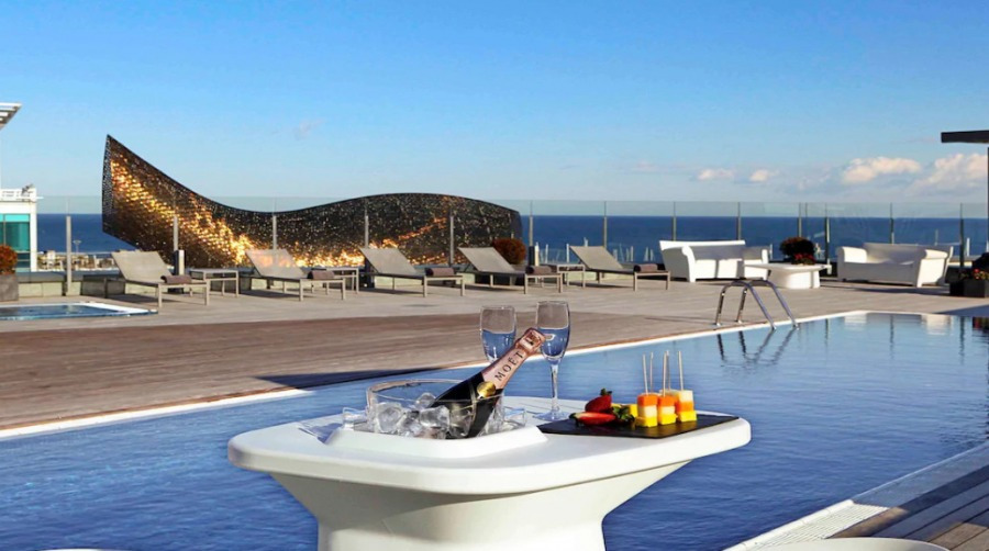 루프탑 수영장에서 수영을 하면서 바르셀로나 시내를 내려다볼 수 있어서