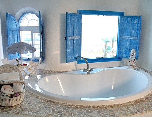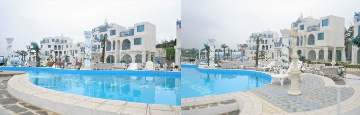 푸른 수영장 물과 산토리니 느낌의 건물의 조화는 마치 그리스에 휴양 온 듯한 느낌을 준답니다.
