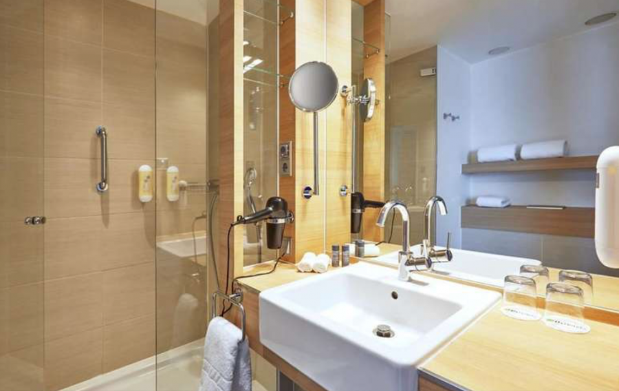 흰 침구류와 최대한 활용되어 있는 수납공간으로 작지만 넓고 아늑한 느낌을 주는 객실이에요. 깔끔한 룸컨디션은 물론 유럽의 여느 숙소와 달리 샴푸, 린스, 바디워시가 구비되어 있으며 드라이기, 커피포트도 있어 여행객들에게 더욱 인기가 좋은 호텔입니다.