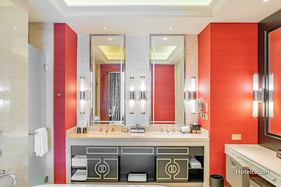 욕실도 넓습니다. 큰 욕조와 함께 2개의 세면대, 필요 이상의 다양한 일회용품이 제공됩니다.