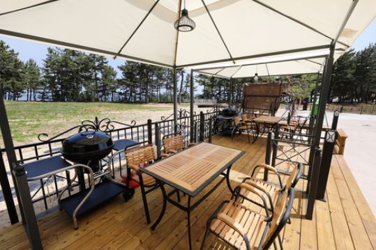 1박2일 펜션 여행의 가장 큰 묘미는 바베큐죠. 삼척 더끌림 펜션의 바베큐장은 저 멀리 보이는 용화해수욕장 뷰와 함께 쾌적한 시설로 바베큐의 맛을 살려주기에 충분해요.