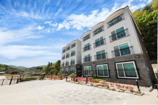 삼척 더끌림 펜션은 모던하고 현대적인 외관의 4층 건물의 삼척펜션으로, 객실마다 발코니가 있어요. 용화해수욕장 바로 앞에 위치해 있어 해변 산책에도 제격이에요.