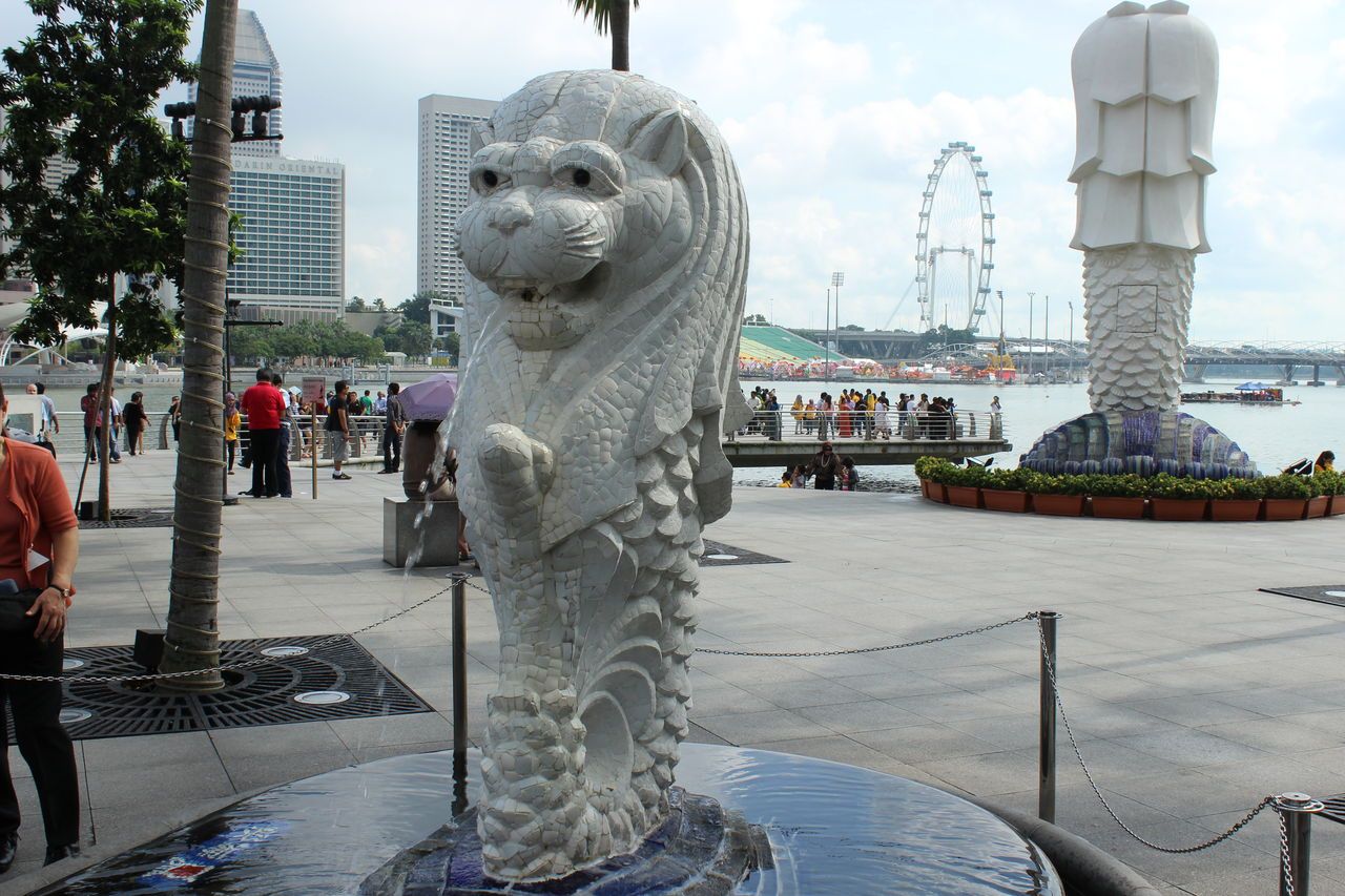 멀라이언의 본가라고 할 수 있는 멀라이언 파크이다. 현재는 탁 트인 곳에 멋지게 서있는 멀라이언을 감상할 수 있었으나 예전에는 다리가 뷰를 막는다던지 분수 펌프가 자주 오작동을 하여 많은 관광객들이 의외로 실망을 하는 경우가 종종 있었지만 이런 문제들이 지금은 모두 해결되어 박력 있는 멀라이언의 자태를 온전히 감상할 수 있다. 도심 한복판에 위치해있으며 주변에 마리나 베이 샌즈 같은 랜드마크들이 모여있다.