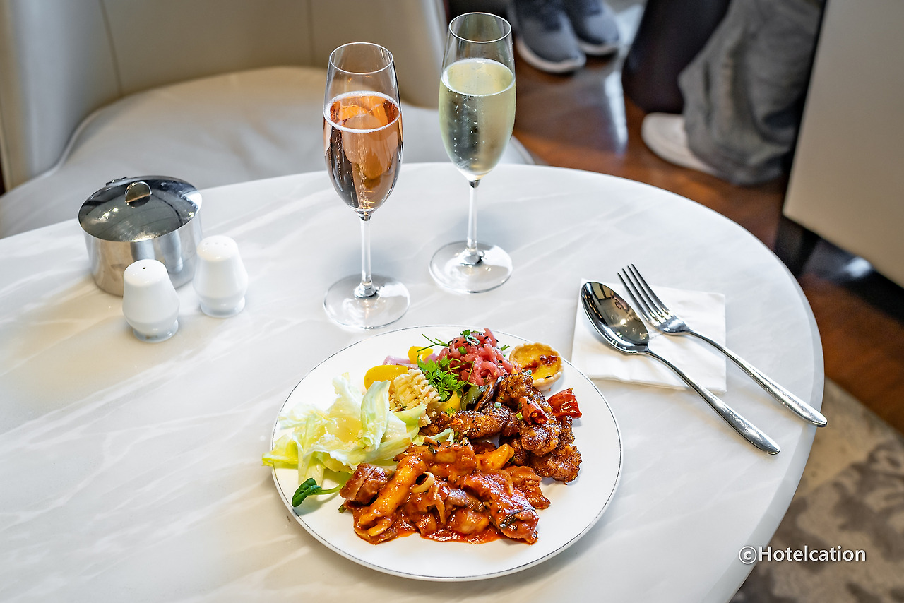 원래도 괜찮았지만 요즘 들어 더 훌륭해진 JW메리어트 동대문의 해피아워입니다. 주류도 다양하고 스파클링 와인도 2종류, 핫푸드도 다양하고 과일, 육회, 롤케이크 등 빠지는 게 없습니다.