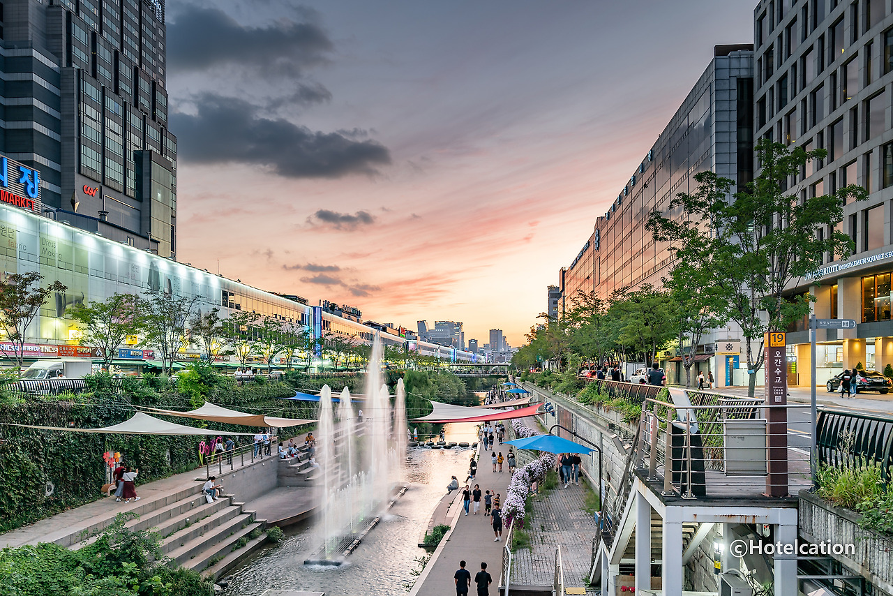 JW메리어트 동대문은 동대문역사문화공원역(DDP)과 동대문역 사이에 위치해 있습니다. 대중교통으로 이용하기도 편리하고 주차장도 넉넉하게 구비되어 있습니다. 특히 청계천과 바로 붙어 있어 산책하기 좋습니다.
