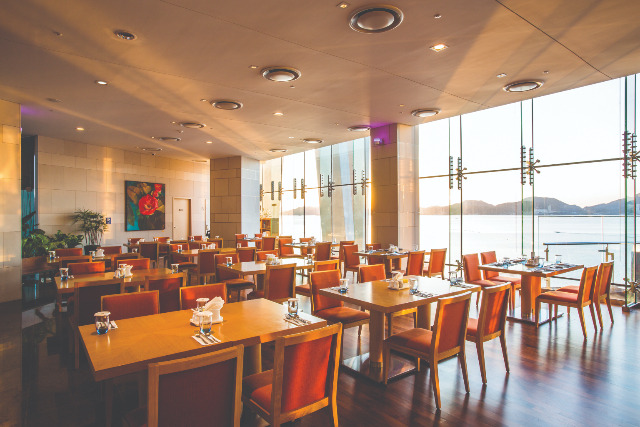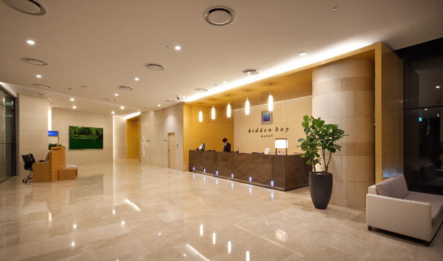 객실과 레스토랑, 2층 테라스에서 여수 바다 전망을 볼 수 있으며 독특하면서도 감각적인 호텔 외관으로 여수에서 인기 많은 호텔이에요. 여수 중심시내에서 차로 10분 거리라서 위치도 좋아요. 로비가 크고 쾌적해요. 특히 통유리라서 바다가 보이는데, 창문 속에 보이는 바다가 예뻐서 객실을 더 기대될 수밖에 없게 해요. 대리석과 우드로 세련되어 보여요. 로비에서 여수 특산물 돌산 갓김치와 케이블카 티켓을 저렴하게 판매하고 있어요.