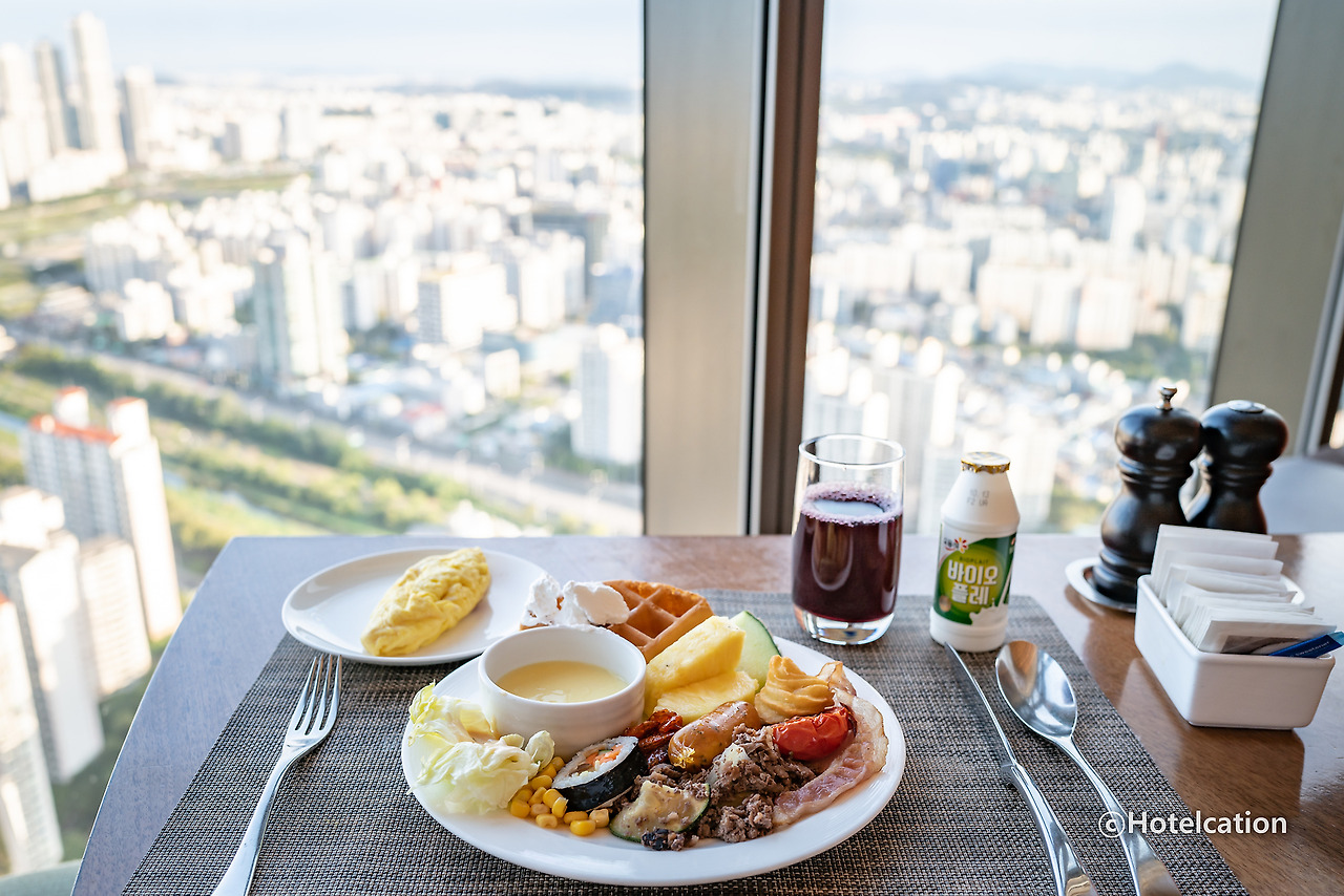 조식은 그런대로 훌륭한 편입니다. 원하는 대로 주문이 가능한 계란 요리와 면 요리, 각종 반찬류와 다양한 제과류가 제공됩니다. 멋진 전망과 함께 먹으니 더 맛있는 것 같아요.