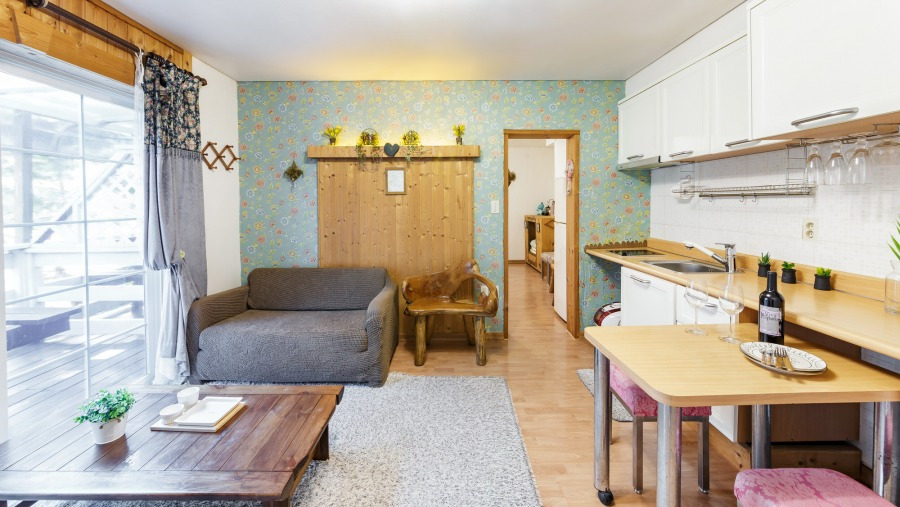 ‘별하나’ 객실은 1층엔 주방시설이 있고, 복층에는 커플 욕조와 밤하늘이 보이는 침대가 있다. 잠들기 전까지 강원도 산골 하늘에 가득 수놓아진 별을 실컷 볼 수 있어 더욱 로맨틱한 객실이다.