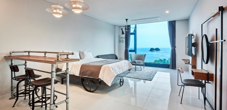 돌산섬에 있는 리조트로 건축 저작권에 등록되어 있을 정도로 건물이 아름답기로 소문난 곳이다. 각 객실은 통유리로 되어 있어 일출, 일몰을 볼 수 있다. 쾌적하며 채광도 좋다. 샴푸, 린스, 바디워시 등도 제공된다. 침대는 푹신해서 잠도 솔솔~