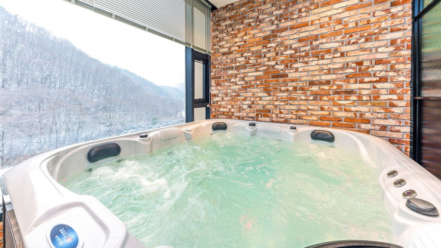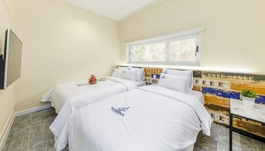마리나 풀빌라는 각 객실마다 다인용 제트스파가 있는 펜션이다. 가족, 친구들과 등산이나 스키를 즐기고 지친 몸을 회복하기에 딱이다. 방마다 다르지만 5~6 인용부터 초대형은 수영을 해도 될 만큼 크기가 남달라 다 같이 스파를 즐길 수 있다. 넓은 거실과 분리된 침실에는 퀸 1 싱글 1 합리적인 구성의 트윈 베드로 여러 명도 넉넉히 숙박할 수 있는데 빳빳한 호텔식 침구까지 있으니 그야말로 꿀잠이 보장되는 곳이라고 할 수 있다.