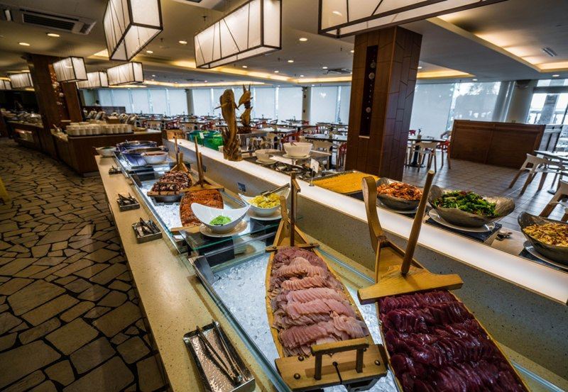 조식은 리조트 내 레스토랑에서 햄버거, 소바 외 다양한 메뉴로 제공하고 있다. 이그젝큐티브 투숙객이라면 전용 라운지에서 무료 조식 서비스를 받으면 된다. 컴퓨터와 프린터도 역시 무료 이용이 가능하다.