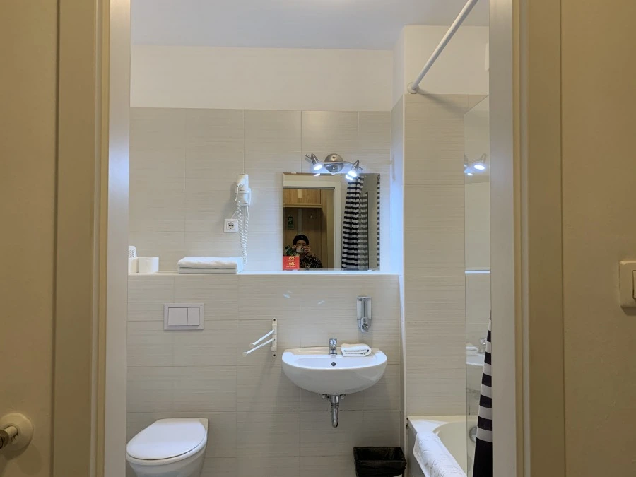목욕 부스와 화장실이 함께 있는 욕실은 화이트톤으로 넓고 깔끔한 인테리어로 잘 꾸며져 있었지만, 아쉽게도 대형 에어비엔비 형식의 아파트먼트 숙소라 욕실 어메니티는 구비되어 있지 않았다. 미리 근처에서 구입해서 가는 걸 추천한다.