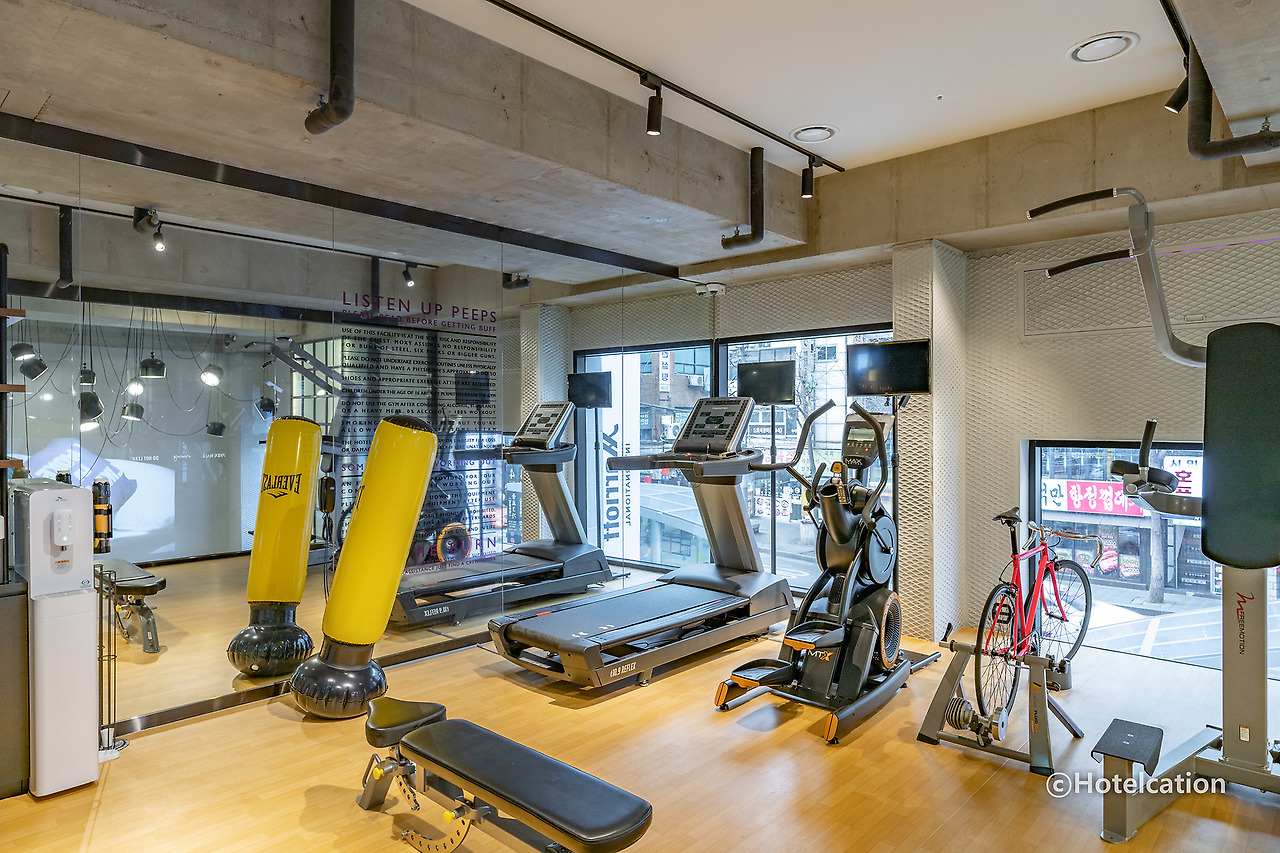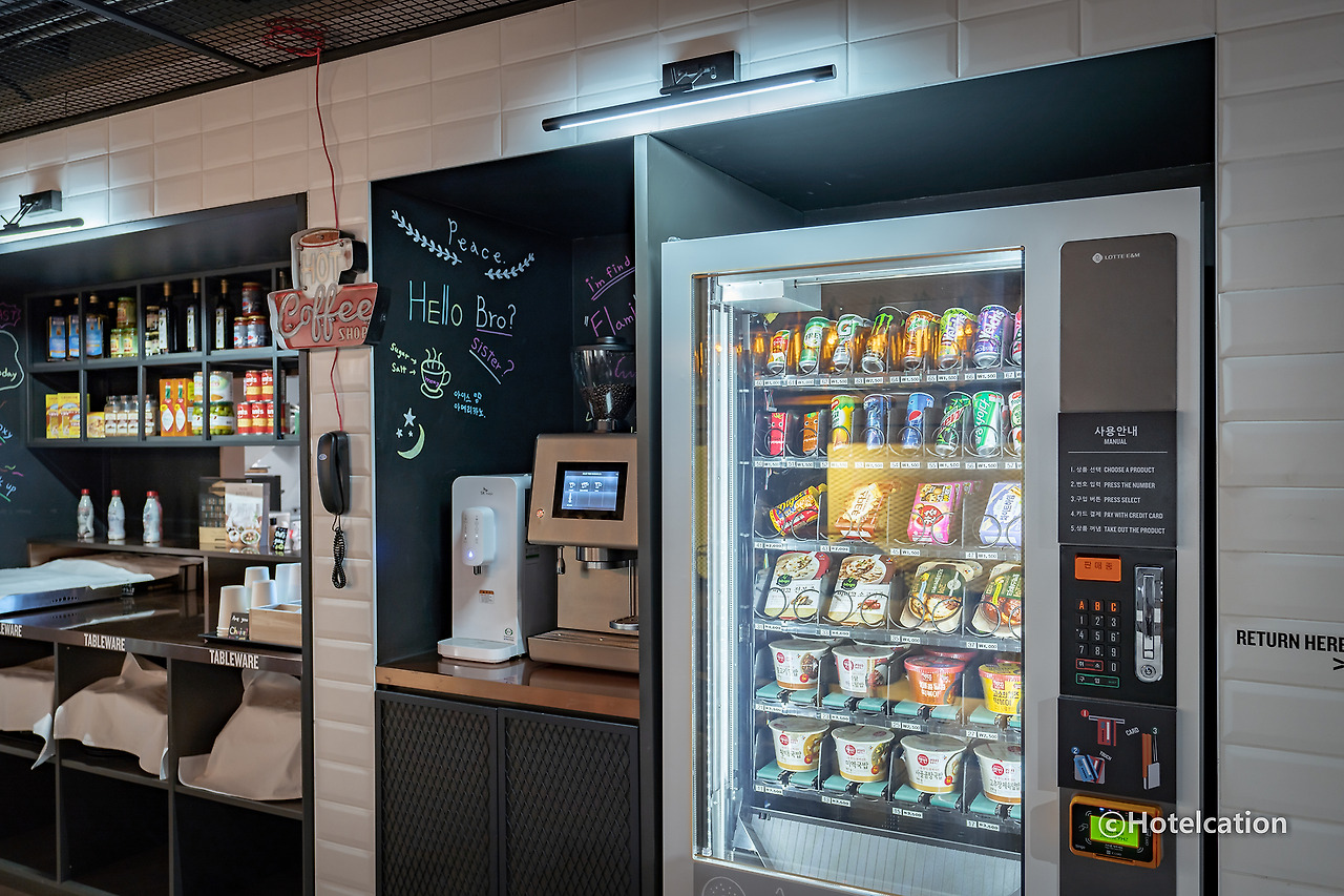 2층에는 간단한 피트니스 시설과 자판기, 커피머신이 배치되어 있고. 안쪽에는 편안하게 쉬면서 책을 읽거나 보드게임등을 즐길 수 있는 공간도 마련해놓았네요.
