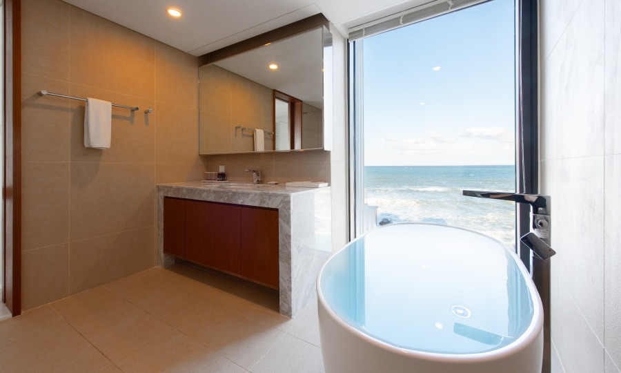 객실에는 3~4명의 가족이 동시에 입욕할 수 있는 대형 히노키탕을 갖추고 있다. 일본 기소산 90년 산 무절목재를 사용했다고 한다. 추가 비용 없이 온수를 마음껏 사용할 수 있어서 사계절 내내 즐길 수 있다.