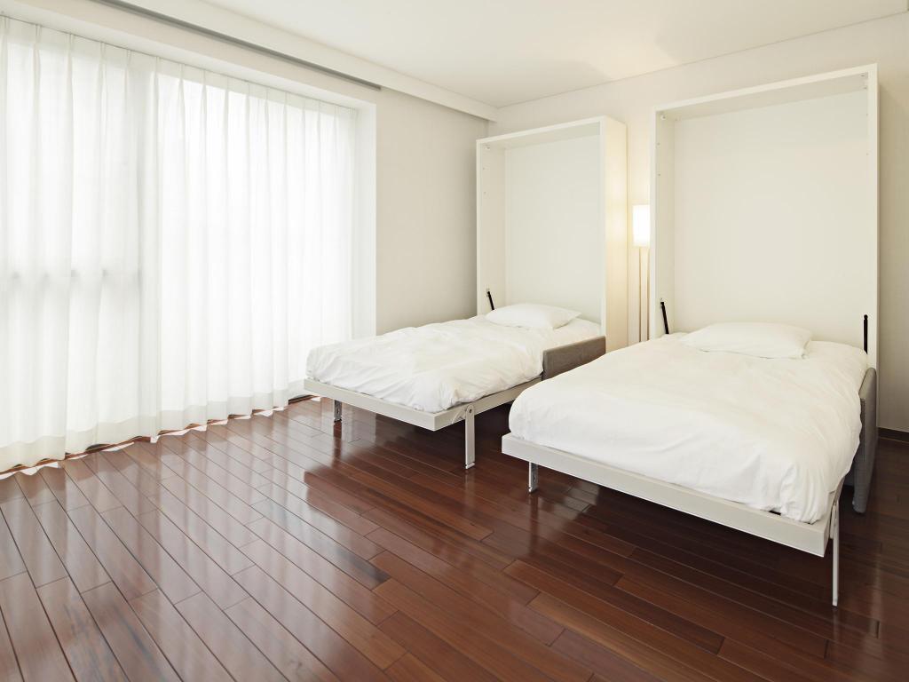 깔끔하고 모던한 분위기가 돋보이는 인더스트리의 객실은 작은 센스들로 더욱 실용성 있는 공간이다. 평범해 보이는 침대는 위로 올리면 소파로 변해 객실을 훨씬 넓게 사용할 수 있다. 거울이 부착된 옷장도 공간을 많이 차지하지 않으면서 실용성이 있어 아담한 객실의 활용도를 높여준다. 욕실에는 샤워부스가 설치되어 있으며 샴푸, 컨디셔너, 샤워젤, 바디로션을 비롯해 칫솔과 치약 등 어메니티가 알차게 구비 되어 있다.