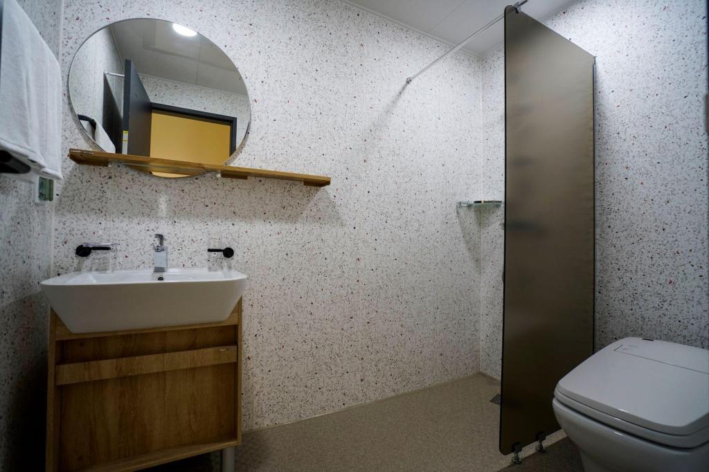 베드가 바다를 볼 수 있는 통창 쪽으로 놓여있어 누워서도 바다를 볼 수 있다. 욕실도 없는 것 없이 공간 활용이 뛰어난 알짜배기 숙소이다. 어메니티도 꼼꼼하게 준비되어 있다. 샴푸와 컨디셔너, 샤워젤, 바디로션과 드라이기, 칫솔, 치약 등이 구비되어 있어 가벼운 마음으로 떠나올 수 있다. 체크인은 15시부터 가능하며 체크아웃은 11시까지.