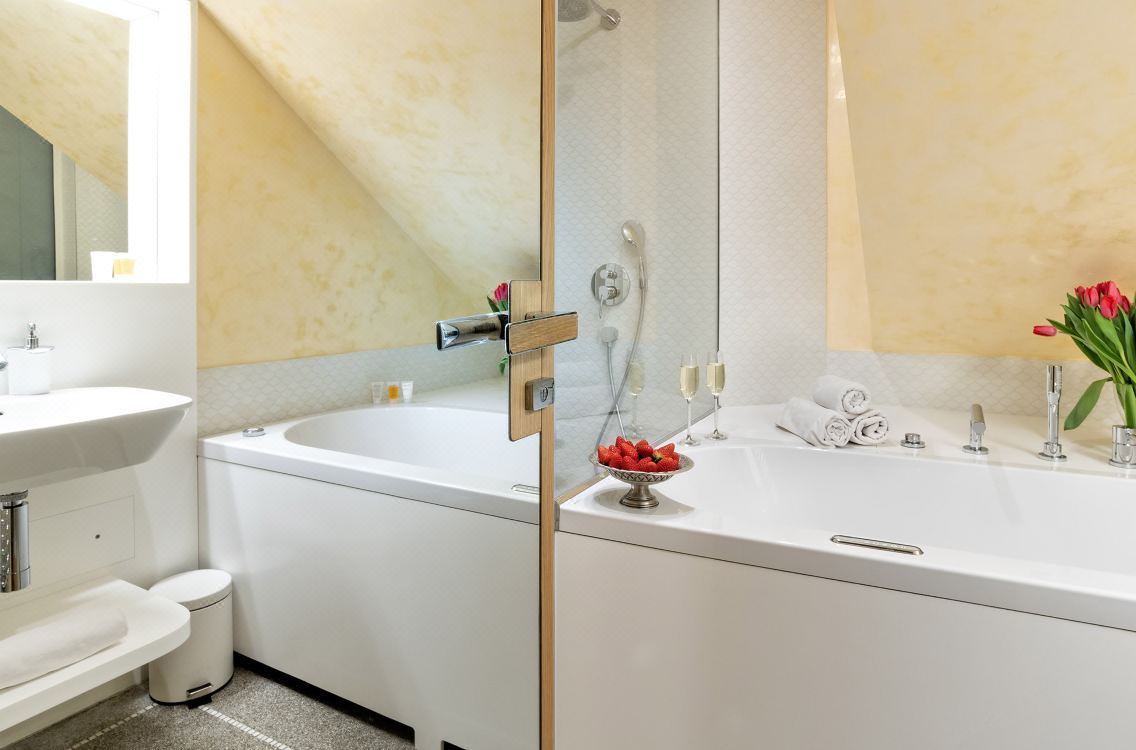 클래식한 유럽풍의 객실로 유럽 여행의 로망을 충족 시켜주는 호텔 레오나르도 프라하! 그중에서도 리버뷰 아파트 객실은 프라하성과 블타바강을 볼 수 있어서 인기가 좋다. 어메니티로는 샴푸, 바디샴푸, 비누 등 기본 세면 용품이 제공되고 리버뷰 아파트 객실의 욕실은 샤워부스와 욕조가 분리되어 있는 구조라 보다 편리하게 사용할 수 있다.