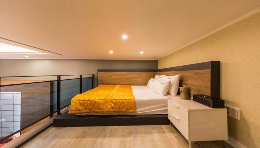 아름다운 기장 바다가 한눈에 들어오는 거실 뷰를 가진 C 401호는 팡시온에서 가장 인기 있는 객실이다. C 401호는 침실 2개, 화장실 2개, 넓은 거실로 구성되어 최대 10명까지 숙박이 가능하다. 각 공간 별로 분리가 되어 있어 음식을 해도 냄새가 배이지 않고, 독립적으로 휴식을 즐기기에도 좋다. 거실이 충분히 넓기 때문에 다 같이 모여도 전혀 답답한 느낌이 없다.