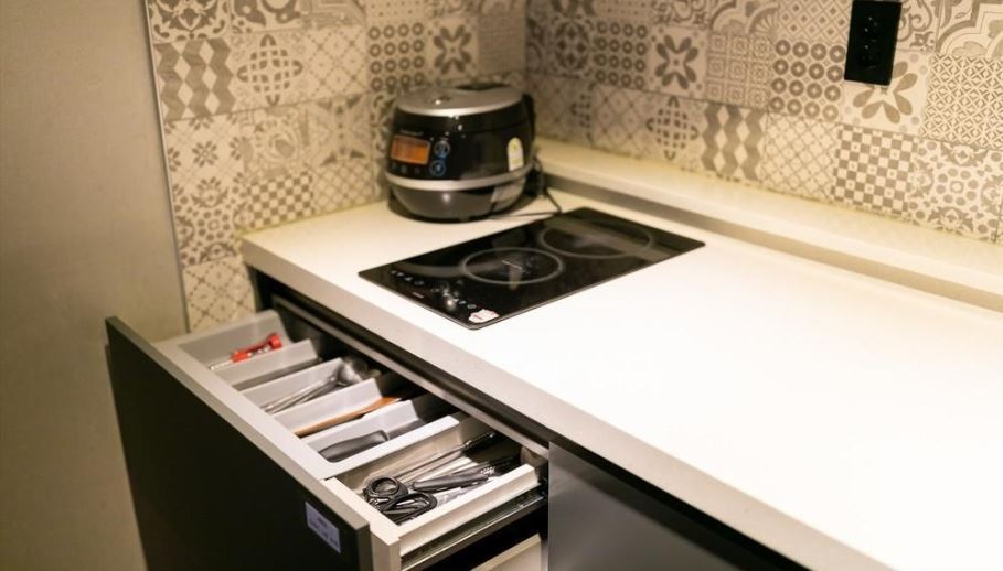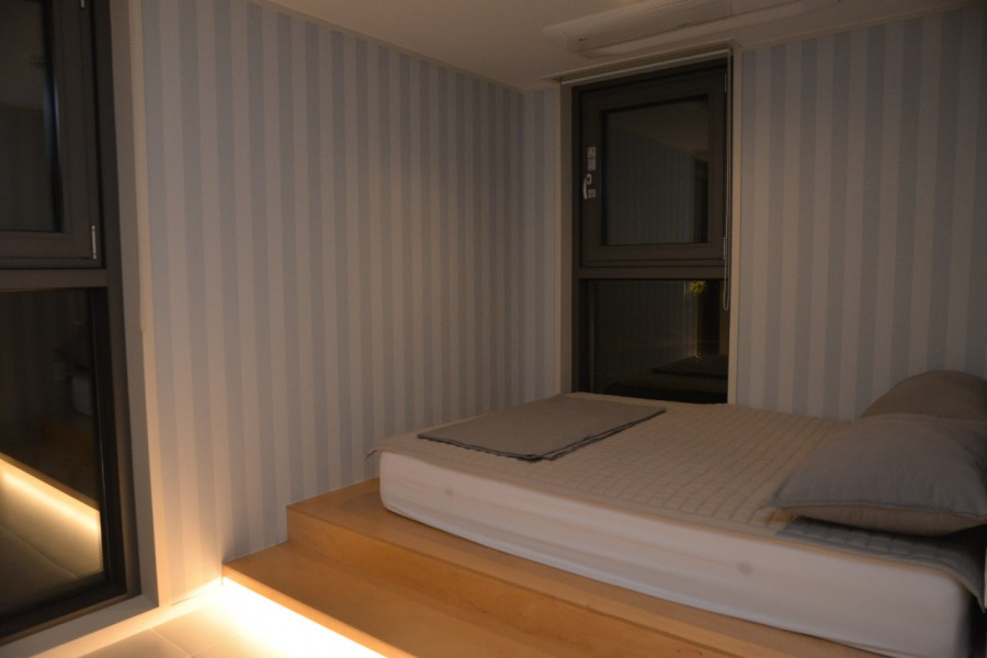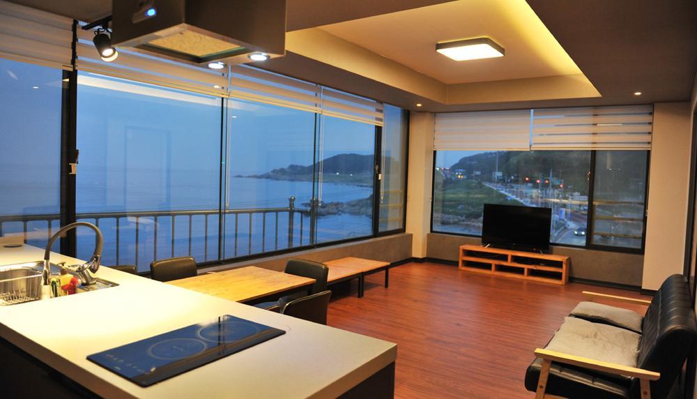 연화 펜션의 300호는 기장의 바다를 원 없이 볼 수 있는 파노라마 오션뷰가 펼쳐진다.. 날씨가 좋은 날이면 하루 종일 바다만 보아도 힐링이 될 만큼 멋진 풍경을 자랑한다. 일출을 보기에도 딱이다. 객실은 침실 2개, 화장실 1개 (공용 화장실 1개 더 있음)에 대면형 주방까지 완벽히 준비되어있어 하룻밤을 보내기에 부족함이 없다. 또 전용 바비큐 시설도 있어 펜캉스에 딱이다. 취사가 가능한 만큼 전기밥솥과 인덕션, 전자렌지, 전기포트, 조리기구 일체가 구비되어 있어 편리하다. 다만 술잔은 따로 없다.