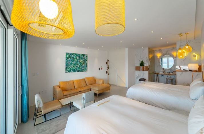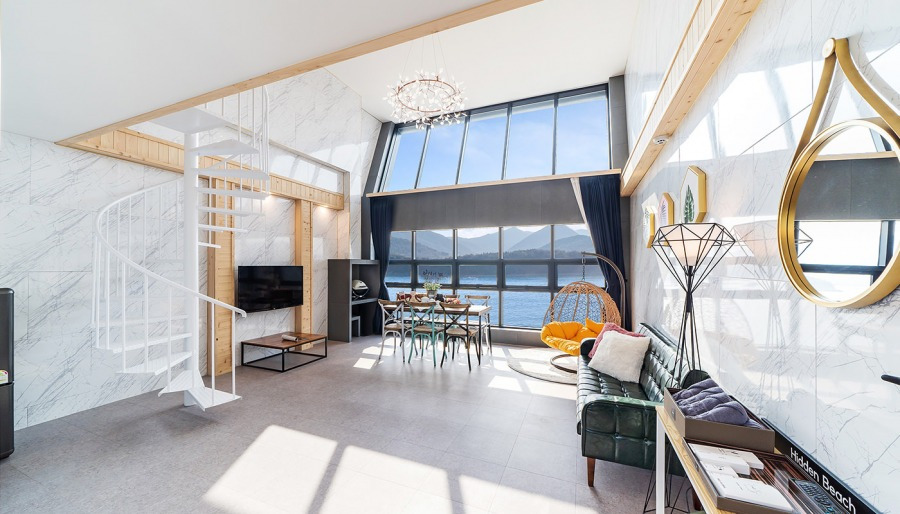 히든비치 리조트의 객실은 크게 단층과 복층으로 나뉜다. 특히 5m가 넘는 창을 넘어 펼쳐지는 바다 전망이 객실의 자랑이다. 완벽한 시설이 갖춰진 개별 테라스도 있어 편안하고 프라이빗한 바베큐 파티도 즐길 수 있다. 편안한 잠자리를 위해 전 객실에 호텔식 침구류가 제공된다. 또한 1일 1침구 교체를 기본 원칙으로 하며 쾌적한 잠자리를 위해 노력하고 있다.