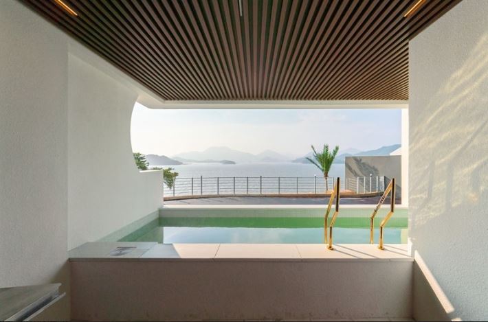 호텔식 고급 어메니티가 객실마다 비치되어 있어요. 샴푸, 컨디셔너, 바디젤, 바디로션, 바디스펀지, 비누, 치약 등을 제공하고 있다. 성수기 기간을 제외한 나머지 기간에는 무료로 조식을 제공하며 다양한 종류의 빵과 음료, 시리얼, 과일 등이 준비된다. 카페 겸 조식식당에서 이용 가능하고 실외에서도 가능하다! 리조트 내에 다양한 부대시설이 갖춰져 있다. 우선 바다와 맞닿은 환상의 오션뷰 온수 수영장이 있는데 4계절 미온수와 아이들도 놀 수 있는 미니 워터 슬라이드가 있는 풀장도 있다.