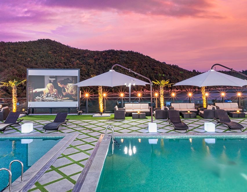 독특하고 화려한 공용 인피니티 풀은 마치 바다와 하늘 사이에 있는 듯한 착각을 불러일으킬 정도! 객실 내의 프라이빗 풀과는 또 다른 느낌이다. 이용요금은 객실 요금에 포함되어 있어 자유롭게 이용이 가능하다. 리조트 투숙객만 이용 가능한 카페도 있고, 바베큐 서비스도 제공하고 있는데 사전 예약이 필요하다 (2인당 10만원)