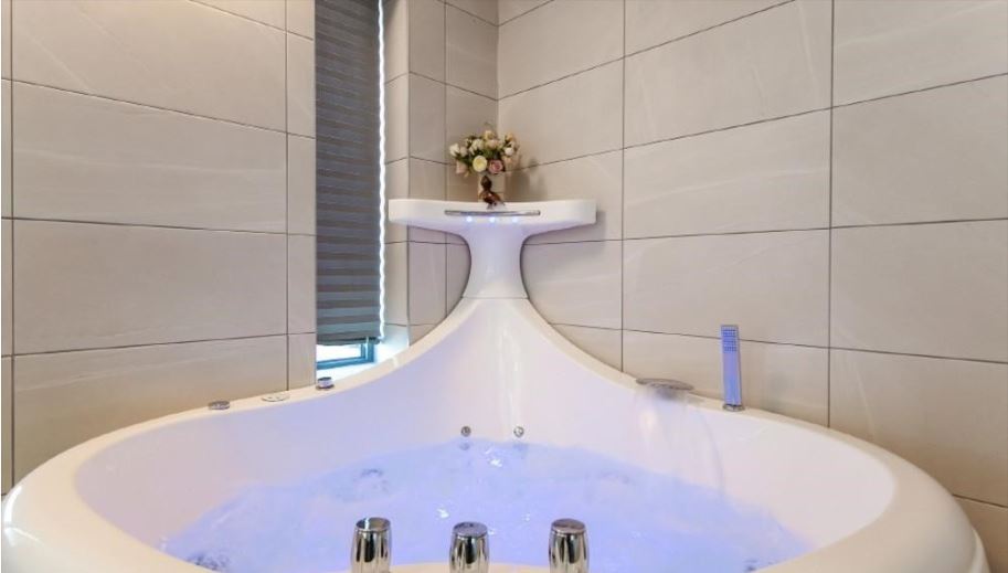 욕실은 넓게 구성된 편으로 커다란 월풀 욕조가 객실마다 설치되어 있다. 여행 후 아이와 함께 따뜻한 스파를 즐길 수 있다. 어메니티는 샴푸와 린스, 바디워시, 비누와 치약 등의 기본적인 제품이 모두 구비되어 있다.