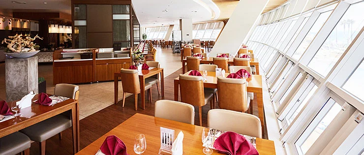 오전 7시부터 오전 10시까지 운영되는 대명리조트 거제 조식은 3가지 레스토랑 중 선택할 수 있는데 모두 유료이니 처음 예약하실 때 조식 포함 예약했는지 꼭 확인하자. 가장 인기가 많은 조식 레스토랑은 ‘콜럼버스 키친’으로 뷔페식 조식을 제공한다. 베이컨, 오리고기, 총각김치 등 아주 다양하게 조식을 맛볼 수 있다.