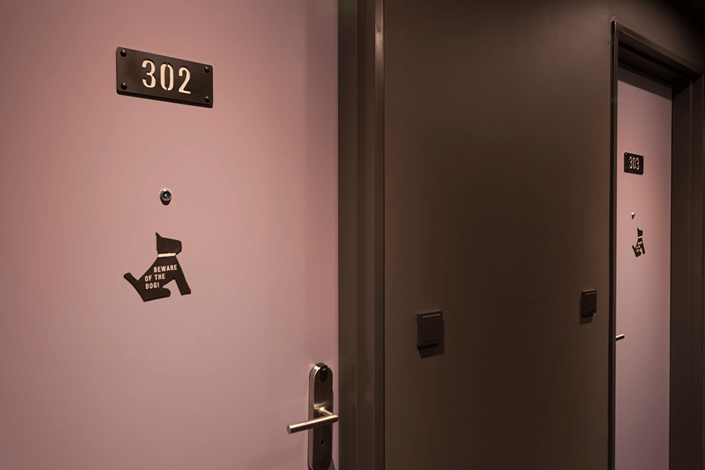 애견 동반이 가능한 3층 바크룸은 귀여운 강아지 그림이 붙어있는 인테리어가 인상 깊다. 하나부터 열까지 강아지와 함께하는 휴식 시간이 한껏 느껴진다.