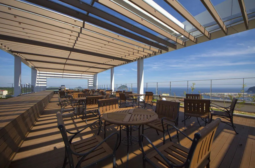옥상 하늘정원에 올라가면 테이블이 있고, 바다 전망을 볼 수 있다. 날씨가 좋다면 한라산도 보인다. 새벽 1시까지 운영하는 CU 편의점이 있어서 간단한 스낵이나 다른 필요한 물품이 있으면 바로 구매할 수 있다.