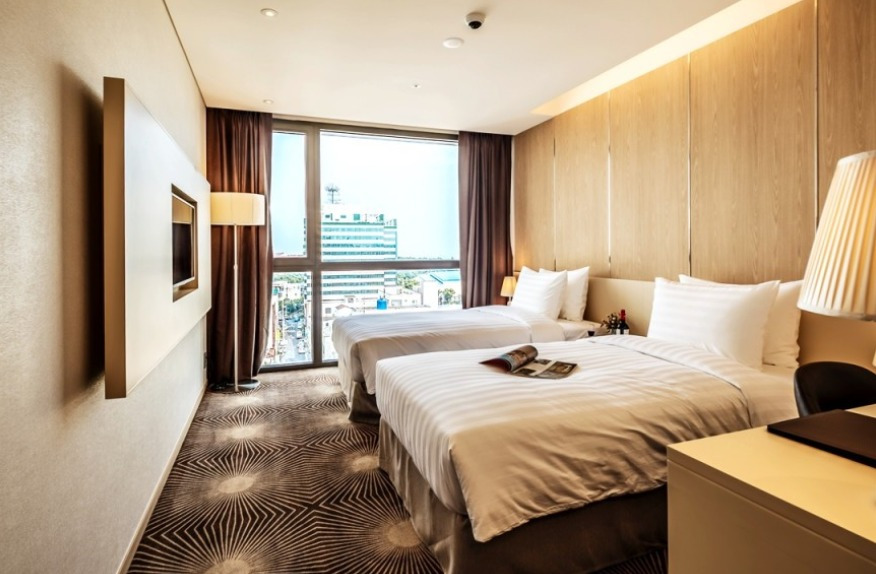 성산일출봉과 가까우면서 객실에서 성산일출봉 전망을 볼 수 있는 호텔이다. 호텔 1층에 편의점이 있어서 필요한 물건이 있으면 간단하게 구매할 수 있다. 주차장은 있지만, 조금 작은 편이다.
