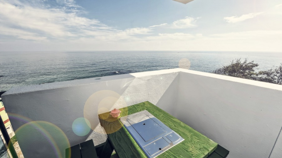 바비큐를 객실 내에서 프라이빗하게 이용 가능하다는 점이 장점이다. 벌레의 습격 없이 바비큐를 즐길 수 있다. 뿐만 아니라 실내 개별 테라스에서 동해바다의 수평선 위로 떠오르는 일출을 감상할 수도 있다!