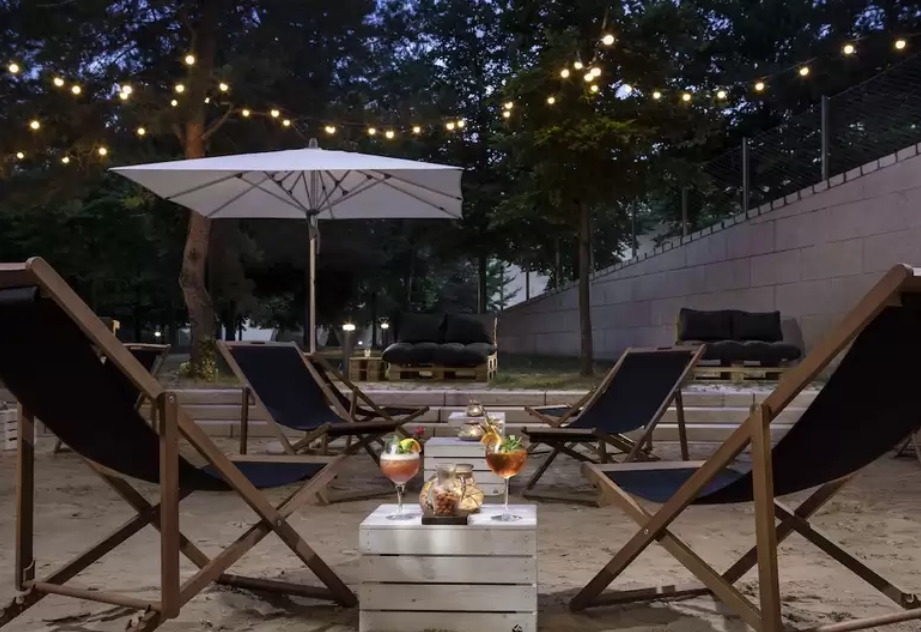 정원에 펼쳐진 귀여운 소파에 누워서 일광욕을 마음껏 즐길 수 있다. 이 밖에 사우나 시설 및 레스토랑 그리고 바 이용이 가능하다.