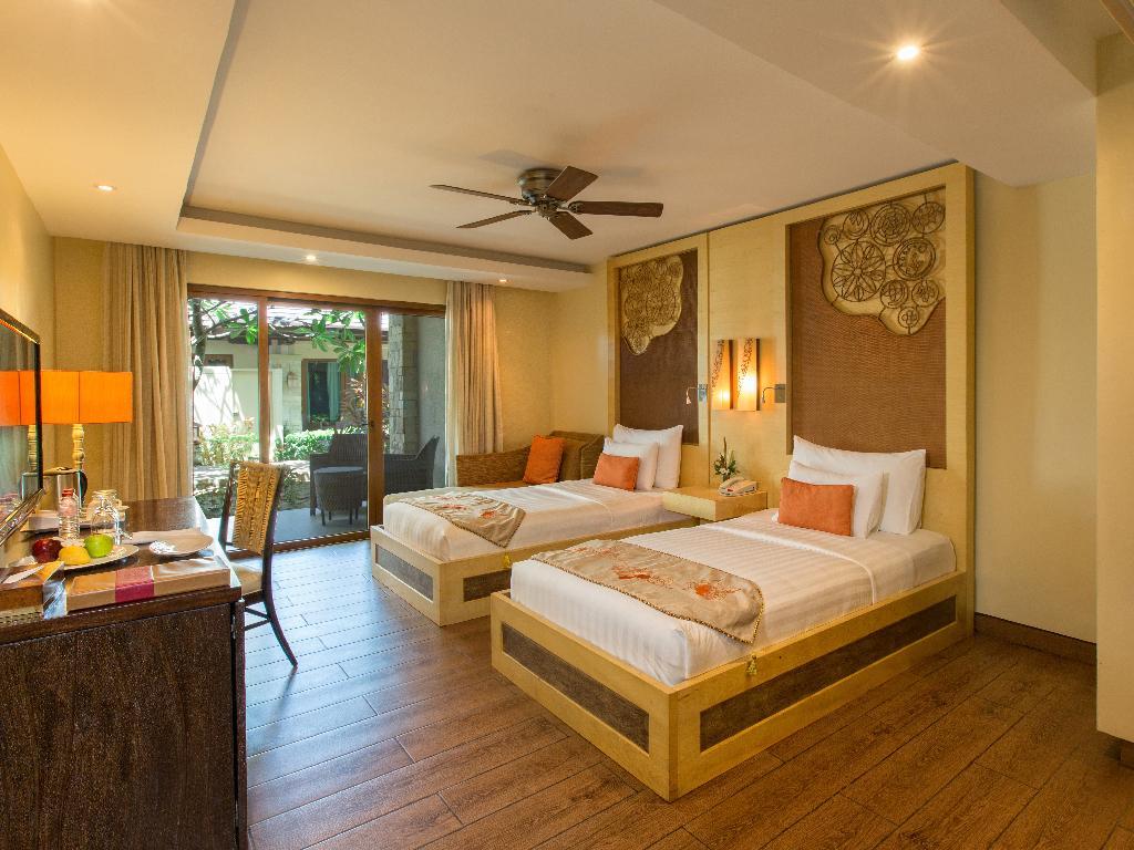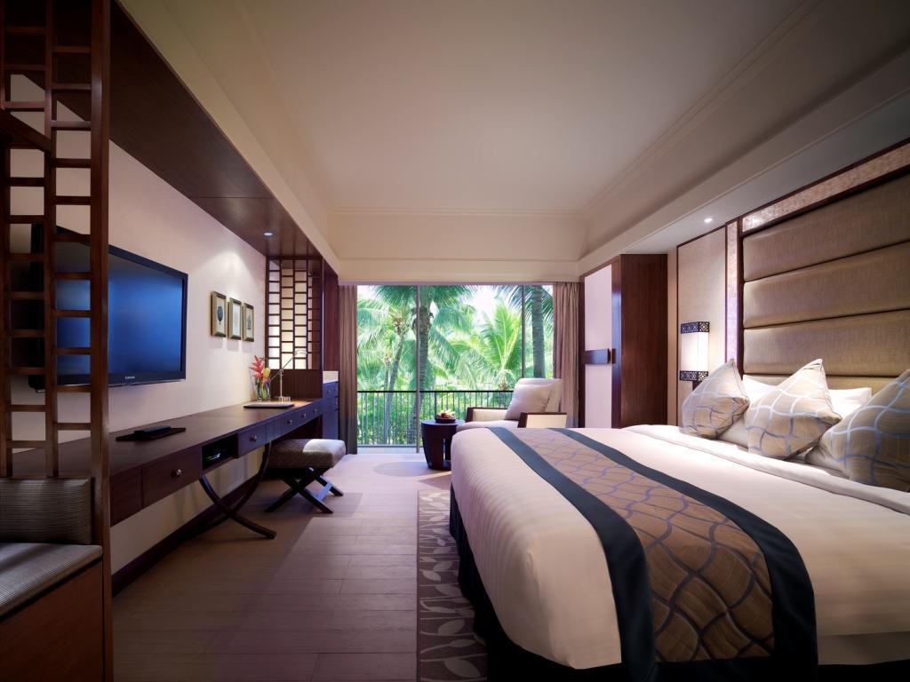샹그리-라스 맥탄 리조트는 럭셔리함을 그대로 담아놓은 객실의 인테리어는 어두운톤의 목재 가구들을 사용하여 편안하면서 우아한 느낌을 내어 머무르기에 아주 좋은 평을 받고 있다. 또한 창을 통해 보이는 휴양지의 상징인 야자수들이 마치 커다란 액자가 걸려있는 듯 보여 눈도 즐겁다.