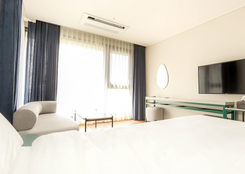 신축 호텔로 내·외부가 깔끔하고 현대적이다. 예민하신 분들에게 특히 추천한다. 수영장을 비롯해 곳곳에 사진 찍을 포인트도 많다. 객실에는 통창이 있어, 제주 자연경관을 즐기기에 좋다.