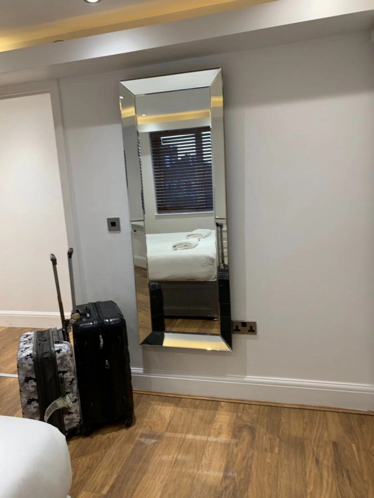 2번 룸은 넓은 더블 침대가 하나 있는 넓은 방이었다! 또, 방에 전신 거울이 있어서 다들 모여서 화장하기도 편했던 객실! 옷장과 화장대가 작지 않은 크기로 있어, 아우터 보관에 좋았다 : 0