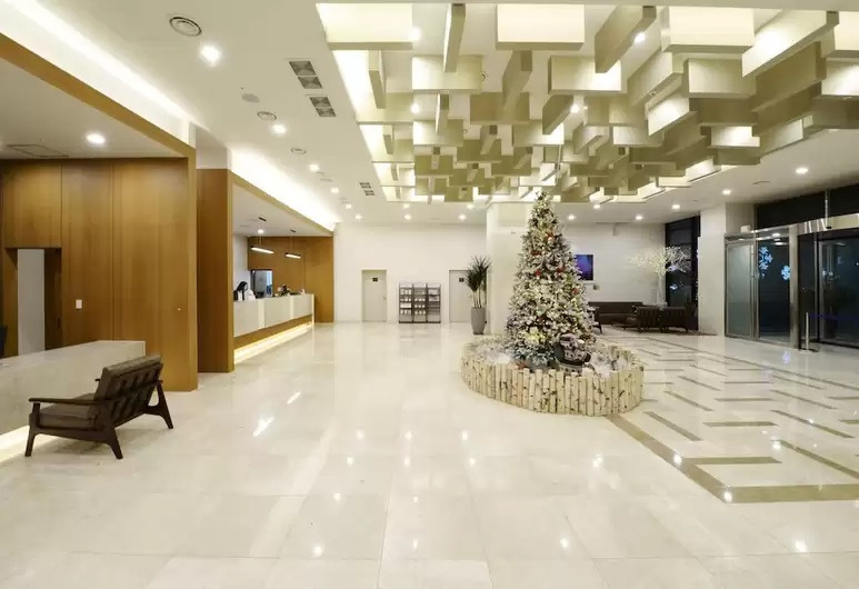 로비는 1층에 있으며 부대시설로는 피트니스 클럽과 아쿠아 패밀리 풀 등을 갖췄다. 수영장은 주중에는 아침 9시부터 저녁 6시까지, 주말에는 8시까지 운영한다. 수영모 없이 입장할 수 있으나, 수영복 착용은 필수이다.