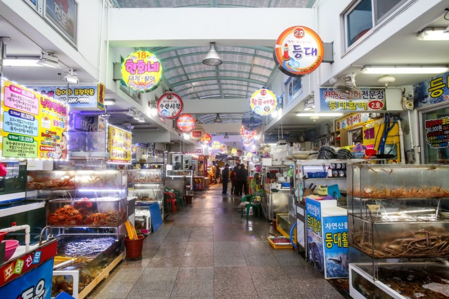 호텔에서 나와 대포항 산책을 마치셨다면, 대포항 관광 수산시장에 들러 보는 것을 추천한다. 자연산 활어회와 각종 해산물 숙회, 튀김을 합리적인 가격에 즐길 수 있다. 주차장이 있으나 유료이니, 투숙객이라면 주차는 호텔에 하는 것을 추천한다.