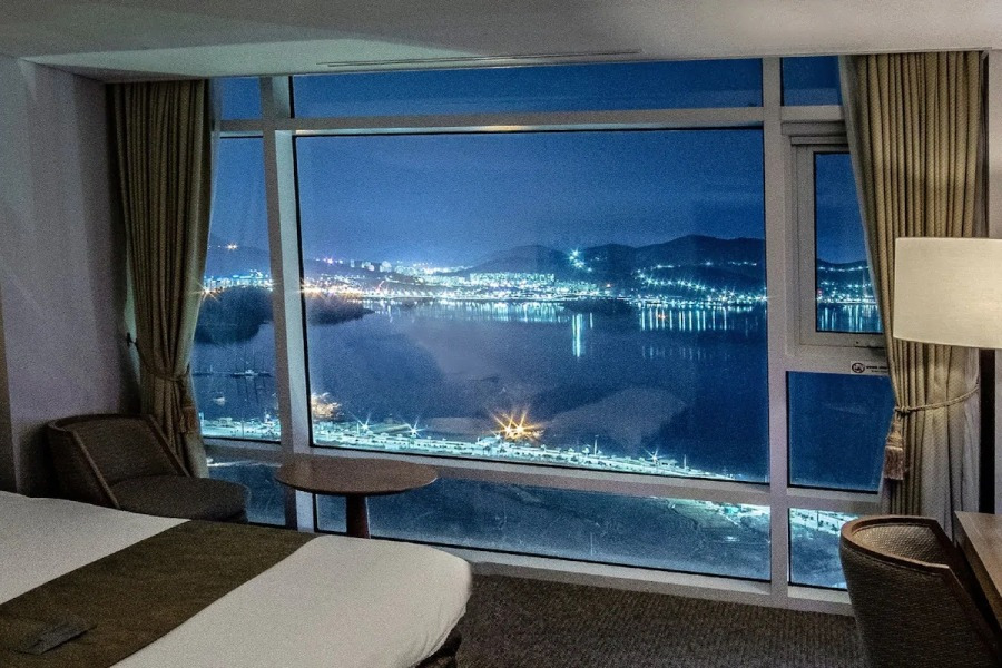리조트와 나란히 여수 바다를 마주한 호텔은 15층 고층 건물로 탁 트인 전망을 즐기기에 딱이다. 로비와 레스토랑은 다소 화려하지만, 객실은 군더더기 없이 깔끔해 바다에 집중하기 좋다.