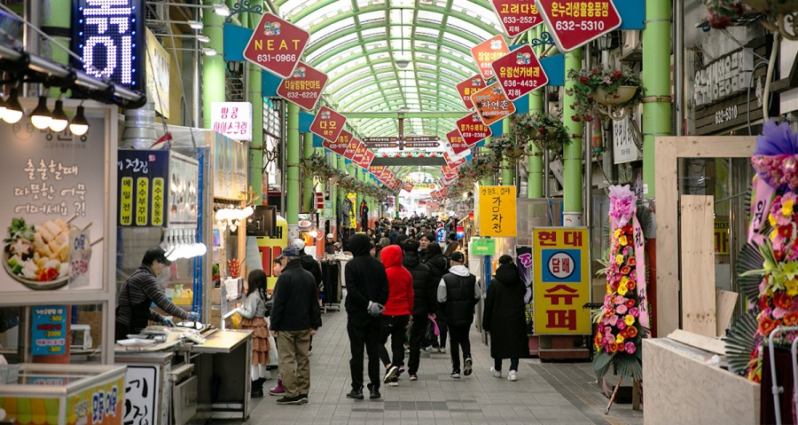 걸어서 5분이면 도착할 수 있는 속초 관광시장은 먹거리와 볼거리가 많아서, 늘 관광객으로 붐빈다. 추천 메뉴는 역시 닭강정! 주차가 다소 어려워서, 투숙객이라면 호텔 주차장을 이용하시고 도보 이동을 추천한다.