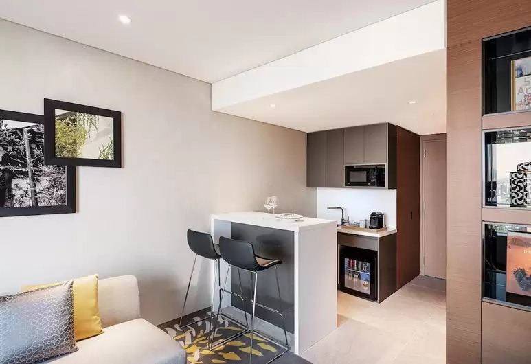 주니어 스위트는 연인과 친구, 가족 등 모두에게 두루 사랑받고 있다. 킹사이즈 베드와 소파, 냉난방 시스템, TV, 책상, 전자레인지, 커피 머신, 세탁시설 등을 갖췄다. 합리적인 가격에 럭셔리 호캉스를 즐기기에 딱이다. 친환경 정책으로 샴푸와 컨디셔너, 바디워시는 리필형 용기에 제공된다. 비누와 핸드워시, 빗, 샤워캡, 바느질 세트 등도 함께 준비된다. 주방과 세탁 세제도 구비돼 있다. 칫솔과 치약만 챙겨 오면 된다. 조식은 2층 푸드 익스체인지에서 뷔페식으로 제공된다. 샐러드, 베이커리, 중식, 한식, 할랄 푸드 등 선택의 폭이 넓어서 골라 먹는 재미가 있다.